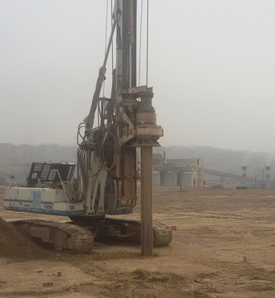 施工內(nèi)容及工程量:樁位測(cè)放,成孔、鋼筋籠制作安裝,旋挖鉆機(jī)成孔,混凝土攪拌,凝土灌注,泥漿渣土處理等工作。完成樁徑800mm的灌注樁273根,樁長(zhǎng)55m,充盈系數(shù)為1.037。