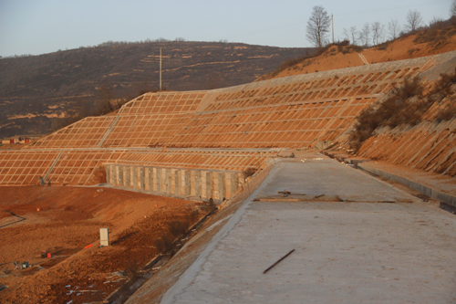 本工程開工時間 2012年12月竣工時間 2015年11月,歷時37個月。共完成抗滑樁7668m3,擋土板1429m3,灌注樁203.47m3,微型樁18741m,混凝土連系梁320.68m3,肋柱擋墻410.29m3,預應力錨索18450m,錨桿6750m,M7.5漿砌石擋墻5512.16m3,加筋土22358m3,仰斜排水孔4630m,截排水溝1878.45m3,滲水盲溝71.67m3,平臺硬化324.5m3,泄水孔1047.5m,土方553894m3,變形監(jiān)測1750點次。