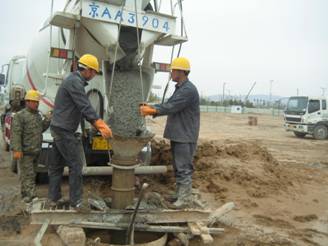 本工程原設計為干孔旋挖鉆孔灌注樁,試樁階段發(fā)現場地地表以下10米到14米位置存在大面積不確定位置的上層滯水,導致嚴重塌孔,經設計院同意,改為泥漿護壁成孔水下旋挖鉆孔灌注樁并采用樁端后注漿工藝。施工內容主要包括:測量放線、鋼筋籠制作、鋼筋籠運輸與吊裝、成孔、水下混凝土灌注、后注漿、渣土清運等。我公司共完成灌注樁共1026根,設計混凝土方量為7225.4m3,實際灌注方量8576.3m3,平均充盈系數1.187。試樁樁身混凝土強度等級為C40,工程樁樁身砼強度等級為C30。