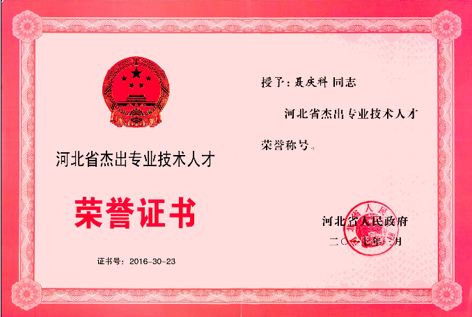 公司總工程師聶慶科同志榮獲“河北省杰出專(zhuān)業(yè)技術(shù)人才”榮譽(yù)稱(chēng)號(hào)