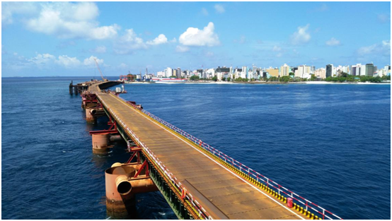 中馬友誼大橋位于馬爾代夫北馬累環(huán)礁(North Malé Atoll),跨越Gaadhoo Koa海峽,連接環(huán)礁上馬累島、機(jī)場(chǎng)島(瑚湖爾島)兩個(gè)相鄰島嶼,是馬爾代夫重要的島嶼連接線工程。項(xiàng)目起點(diǎn)位于馬累島東南角,順接規(guī)劃Boduthakurufaanu Magu道路,隨后設(shè)置橋梁跨越Gaadhoo Koa 海峽,在機(jī)場(chǎng)島南段登陸,大橋接線與機(jī)場(chǎng)到Hulhumale 規(guī)劃路順接,全橋長(zhǎng)度2km,雙向四車(chē)道,由橋梁、引堤、道路等工程組成,主橋?yàn)橹骺?80m混合疊合梁連續(xù)鋼構(gòu)橋,引橋?yàn)樯w梁混凝土預(yù)制梁橋。項(xiàng)目采用中國(guó)公路工程規(guī)范標(biāo)準(zhǔn),設(shè)計(jì)使用壽命100年。
