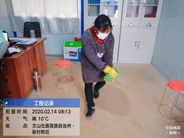 每天使用84消毒液對于大家的生活環(huán)境(宿舍、食堂、辦公室、水房、廁所等)進行消毒,尤其是水房及廁所等細(xì)菌病毒易于滋生的地方。由司機兼采購宋玉杰,負(fù)責(zé)消84毒液的采購,保證供應(yīng)。