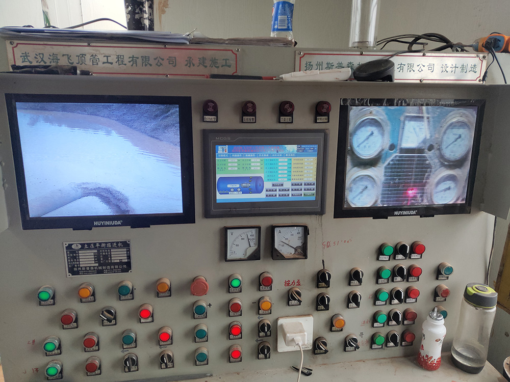 頂進用工作井頂進設備進行速度控制,分為兩個部分,機頭入洞階段要嚴格控制速度,此階段重點是找正管子中心、高程,偏差控制在±5mm之內,所以速度不要太快。