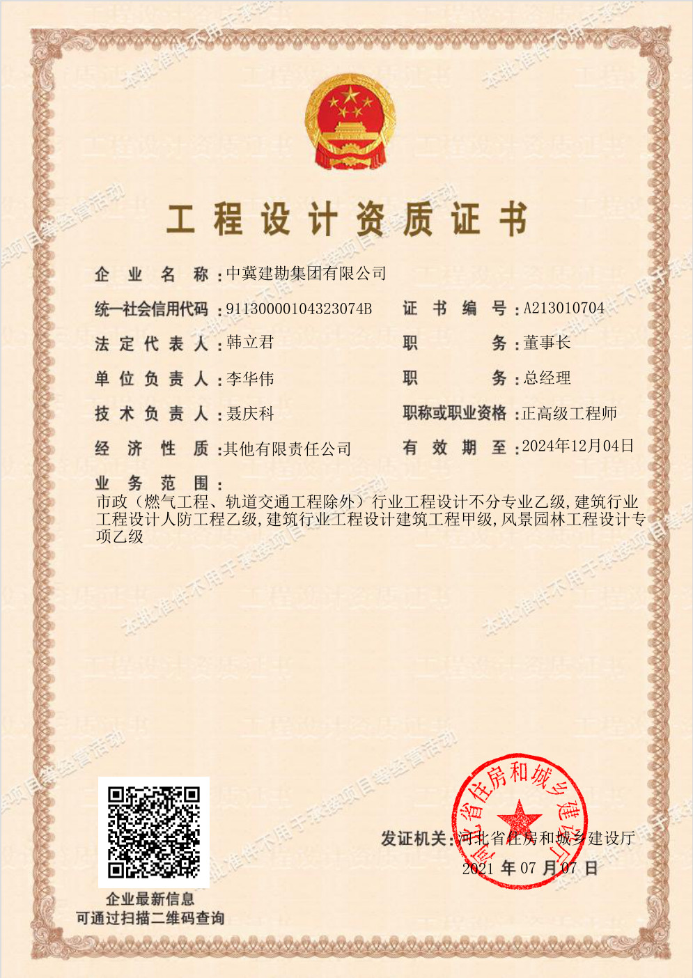 集團(tuán)公司取得風(fēng)景園林工程設(shè)計專項乙級資質(zhì)證書