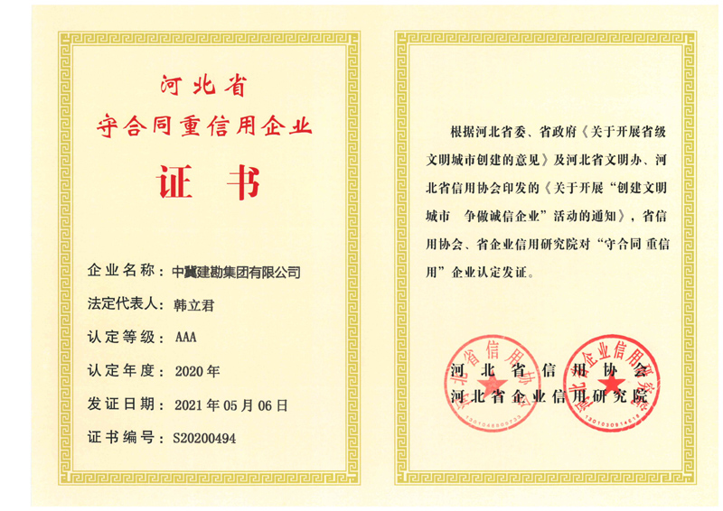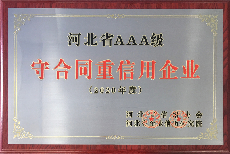 根據(jù)河北省信用辦、河北省信用協(xié)會(huì)等七部門印發(fā)的《關(guān)于開(kāi)展“推進(jìn)誠(chéng)信建設(shè)共建信用河北”的活動(dòng)方案》的通知,河北省信用協(xié)會(huì)、河北省企業(yè)信用研究院對(duì)“守合同重信用”企業(yè)進(jìn)行認(rèn)定,我公司繼續(xù)被評(píng)定為“河北省AAA級(jí)守合同重信用企業(yè)”。