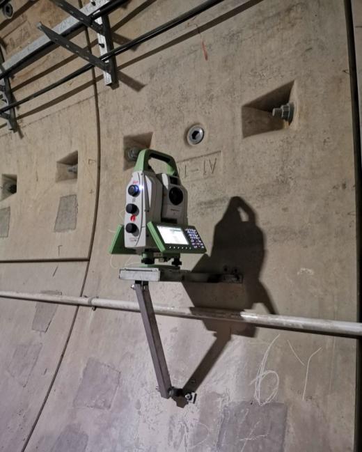 ?。?)在進行3號線北邊段(西三莊站~市二中站)運營監(jiān)測時,我方積極思考創(chuàng)新,在布設水平位移測點時同時布設了強制對中基座,使觀測數據更為精確;并且用強制對中基座監(jiān)測對中控制更為方便,有效縮短了作業(yè)時間。