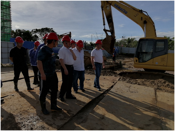 自9月13日中冀建勘辦公樓開工儀式以來,經(jīng)過近一個(gè)月時(shí)間的努力,現(xiàn)場(chǎng)基本達(dá)到了24小時(shí)不間斷施工狀態(tài)。韓董事長(zhǎng)一行人首先來到項(xiàng)目施工現(xiàn)場(chǎng),對(duì)現(xiàn)場(chǎng)周邊環(huán)境、施工現(xiàn)場(chǎng)質(zhì)量控制、安全管理、基坑支護(hù)工程進(jìn)度情況等進(jìn)行了檢查。在聽取項(xiàng)目匯報(bào)后,李總經(jīng)理肯定了項(xiàng)目部在項(xiàng)目管理上的工作成果,重點(diǎn)提出對(duì)現(xiàn)場(chǎng)混凝土抽查檢測(cè)和基坑支護(hù)方案優(yōu)化等問題,強(qiáng)調(diào)狠抓現(xiàn)場(chǎng)質(zhì)量管理等事項(xiàng)。韓董事長(zhǎng)要求建設(shè)單位、施工單位和監(jiān)理單位要各負(fù)其責(zé),嚴(yán)格把控現(xiàn)場(chǎng)質(zhì)量控制、安全管理,按時(shí)保質(zhì)的完成基礎(chǔ)施工工程,爭(zhēng)取明年3月底完成±0以下施工。同時(shí)要求項(xiàng)目部在今后的工作中繼續(xù)嚴(yán)格執(zhí)行公司管理要求,做好疫情管控,細(xì)化項(xiàng)目質(zhì)量、安全、進(jìn)度管理,樹立良好的中冀建勘形象,努力把項(xiàng)目建設(shè)成為??诮瓥|新區(qū)優(yōu)質(zhì)工程,為中冀建勘打開海南總承包市場(chǎng)打下良好基礎(chǔ)。