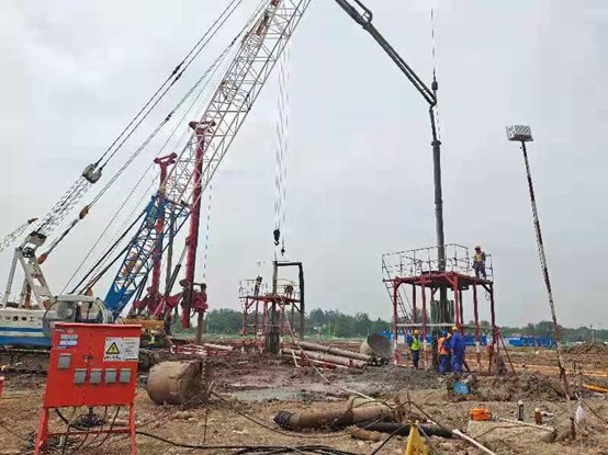 本工程于2021年5月7日開工,歷時72天,兩臺儲罐于7月13日全部完工。共完成鋼筋混凝土灌注樁600根(包含能源樁240根),廠區(qū)內(nèi)臨時道路約12000m2,能源樁水平管施工等工作量。