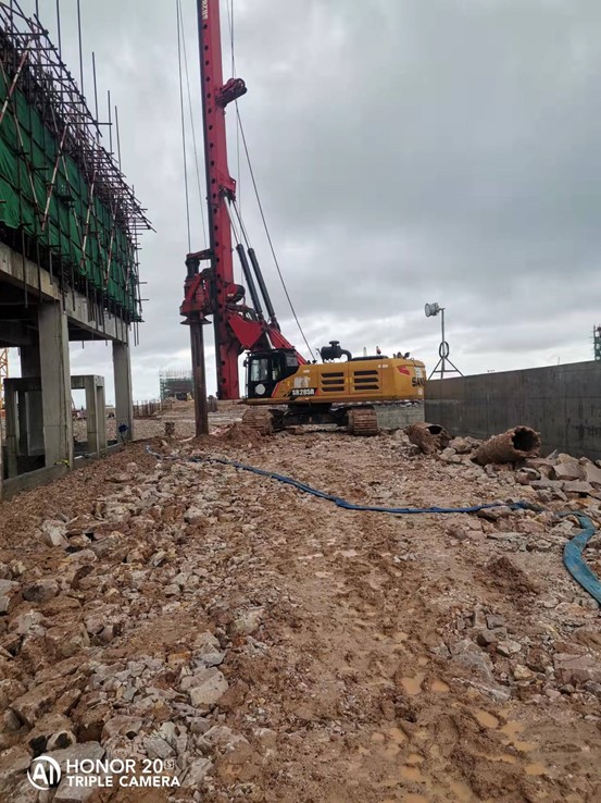 本項(xiàng)目位于柬埔寨西哈努克市西哈努克港海邊。受華電西港發(fā)電有限公司委托,我公司承擔(dān)本項(xiàng)目樁基施工。本工程陸地混凝土灌注樁共有Φ800灌注樁95根,平均樁長29.38m。海上灌注樁Φ1000灌注樁19根,平均樁長33.47m;Φ1200灌注樁4根,平均樁長30m?;炷翉?qiáng)度等級為C40。本工程持力層為中風(fēng)化粉砂巖,樁端進(jìn)入持力層大于1倍樁徑。