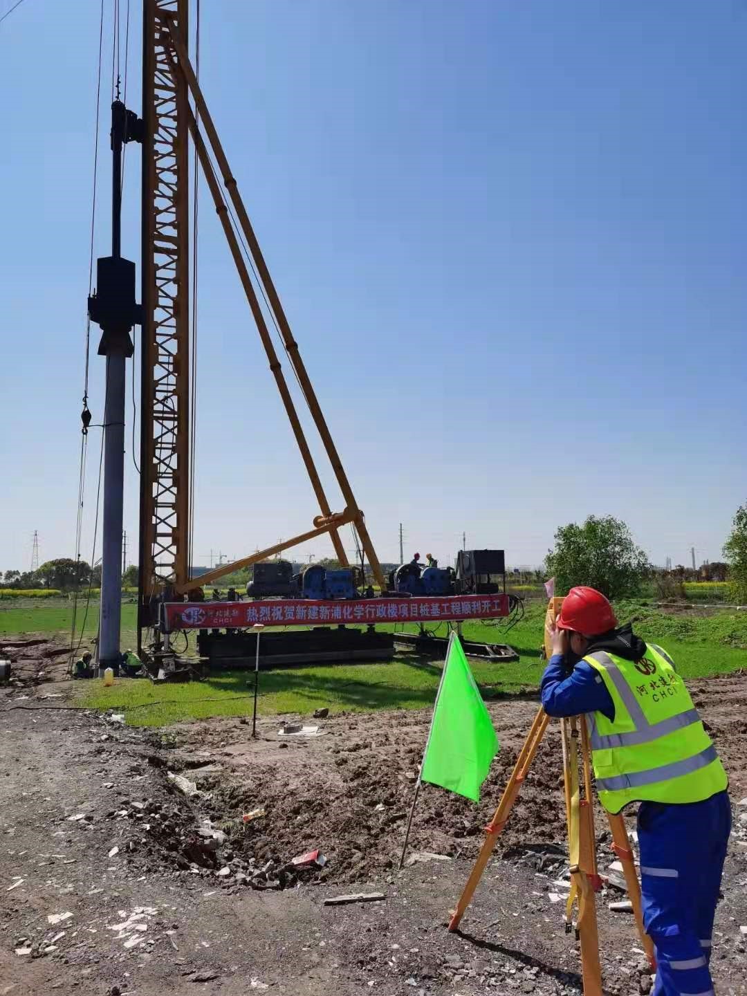 新建新浦化學行政樓(研發(fā)科創(chuàng))項目位于江蘇省泰興市濱江鎮(zhèn),由新浦化學(泰興)有限公司投資建設(shè),我公司負責場平工程及樁基工程施工(含試樁)。主要工作內(nèi)容包括行政樓主樓和地庫全部樁基礎(chǔ),共計預應(yīng)力管樁1249根,其中314根樁樁徑為0.6m,935根樁樁徑為0.5m,累計施工預應(yīng)力管樁延米數(shù)24016m³。