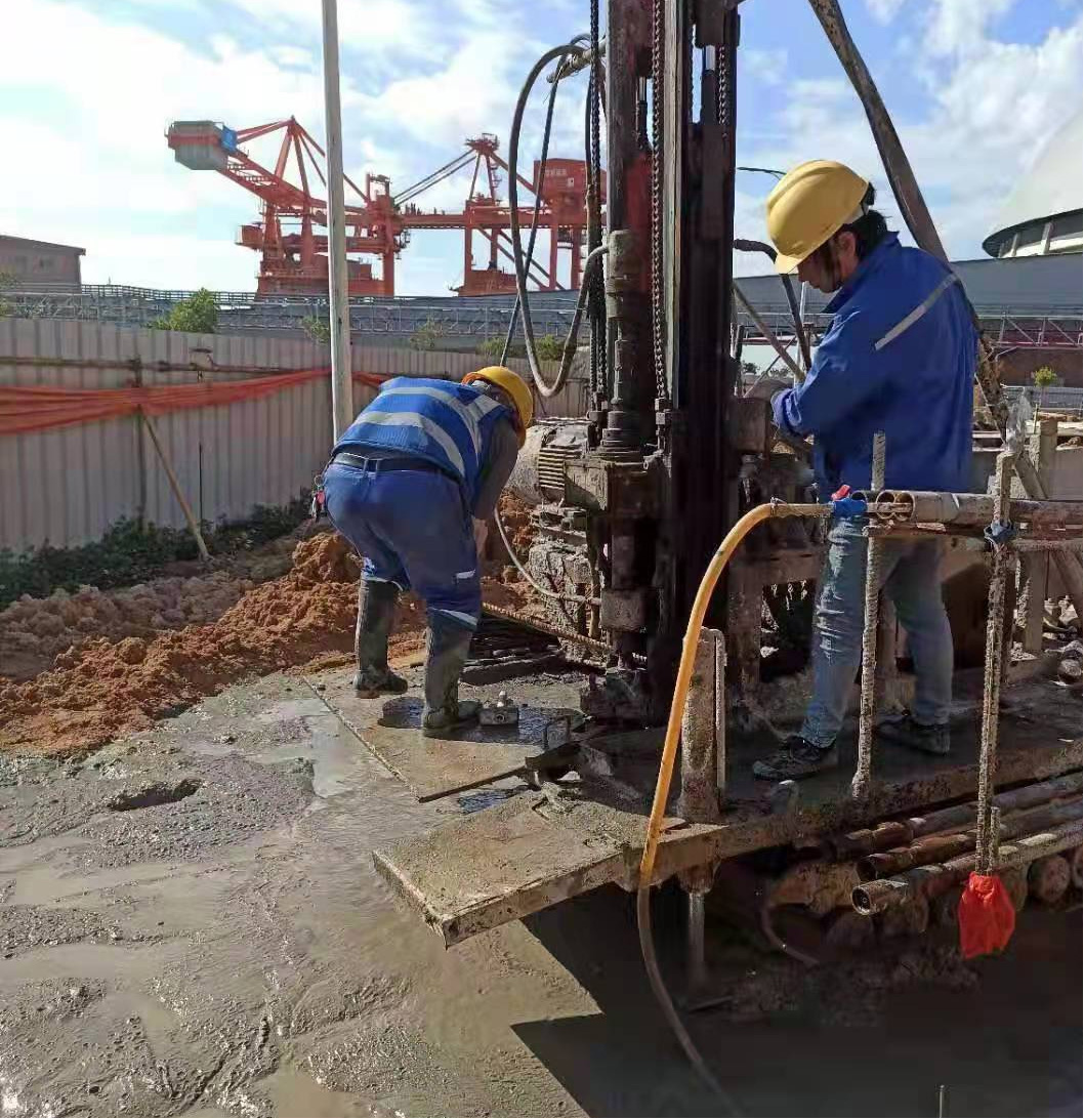 本工程建設(shè)地點位于廣東省汕尾市,受陸豐寶麗華新能源電力有限公司委托,我公司承擔(dān)本項目樁基施工。工程量包括Φ1000mm的灌注樁80根、Φ700mm的高壓旋噴樁樁80根。灌注樁為嵌巖樁,混凝土強度等級為C30,設(shè)計要求嵌入中風(fēng)化巖層,且嵌巖深度不小于1D,且樁長不小于15m。高壓旋噴樁樁體有效直徑700mm,有效樁長不小于9m,同時滿足樁底標(biāo)高達(dá)到強風(fēng)化花崗巖面。