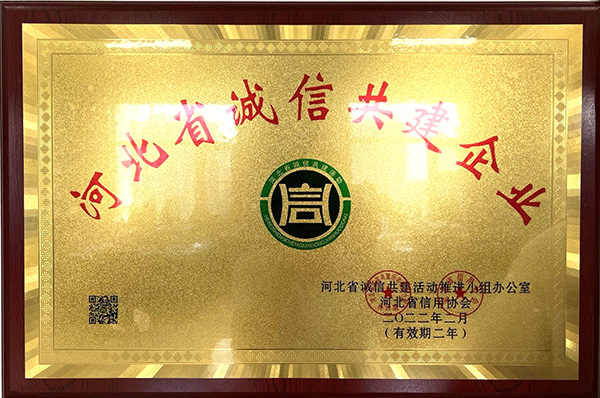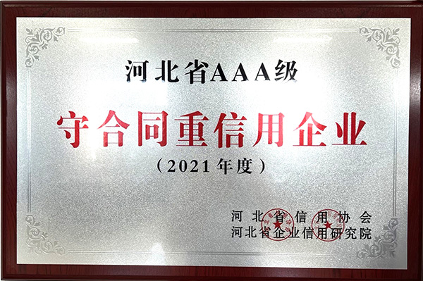 根據(jù)河北省信用辦、河北省信用協(xié)會(huì)等七部門(mén)印發(fā)的《關(guān)于開(kāi)展“推進(jìn)誠(chéng)信建設(shè)共建信用河北”的活動(dòng)方案》的通知及《關(guān)于2021年度河北省“守合同重信用”企業(yè)申報(bào)認(rèn)定工作的通知》,我公司被評(píng)為“河北省誠(chéng)信共建企業(yè)”和“河北省AAA級(jí)守合同重信用企業(yè)”。