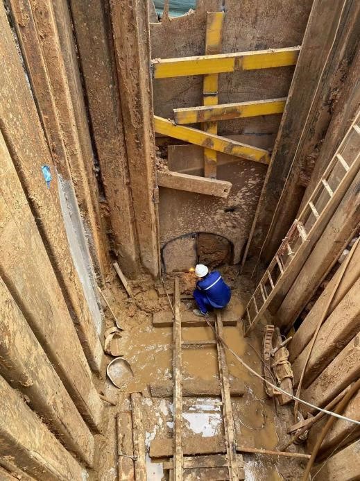 本工程因施工區(qū)域位于場內道路兩側,施工空間受限,人工頂管工作基坑開挖尺寸受限,且不能放坡開挖,并且現場消防水管、光纖管等既有管線多,地下水位淺,施工難度較大。定向鉆穿越施工同樣也是探明地下既有管線,按圖紙要求并考慮延長設計穿越路徑,并在穿越過程中通過傳感器發(fā)出的信號及時調整偏差,在項目部的精心組織和實施下,最終順利完成所有路段的管道穿越任務并交付。