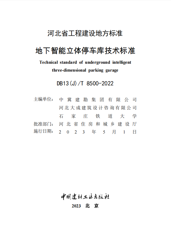 近日,我公司主編的河北省工程建設(shè)地方標(biāo)準(zhǔn)《地下智能立體停車(chē)庫(kù)技術(shù)標(biāo)準(zhǔn)》(DB13(J)/T 8500-2022)、《污染場(chǎng)地巖土工程勘察技術(shù)標(biāo)準(zhǔn)》(DB13(J)/T 8518-2023)由河北省住房和城鄉(xiāng)建設(shè)廳正式發(fā)布,并印刷出版發(fā)行,分別將自2023年5月1日和7月1日起實(shí)施。