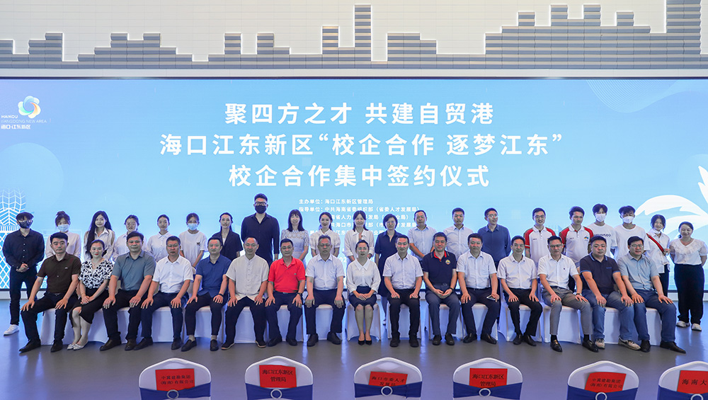 5月19日上午,由??诮瓥|新區(qū)管理局主辦,??诮瓥|人才就業(yè)服務站、海南人才集團有限公司承辦的“聚四方之才 共建自貿(mào)港”??诮瓥|新區(qū)“校企合作 逐夢江東”校企合作集中簽約儀式在江東新區(qū)展示中心舉辦。來自園區(qū)的8家重點用人單位與6所海南省高等院校在人才定向培養(yǎng)、實習基地構建、人才技能培訓及專項課題研究等多個領域攜手共謀“協(xié)同育人”新篇章。集團公司總經(jīng)理李華偉、監(jiān)事會主席李友東、技術質(zhì)量部主任商衛(wèi)東及海南公司管理事業(yè)部主任陳家勇等參加簽約儀式。