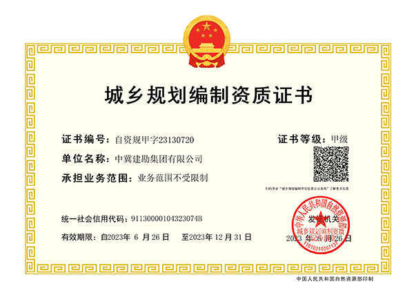 經(jīng)過10個(gè)月的精心準(zhǔn)備和實(shí)施,集團(tuán)公司于2023年6月26日通過了自然資源部城鄉(xiāng)規(guī)劃編制單位資質(zhì)審查,喜獲城鄉(xiāng)規(guī)劃編制單位甲級資質(zhì)。城鄉(xiāng)規(guī)劃編制單位甲級資質(zhì)是規(guī)劃行業(yè)的最高資質(zhì)等級,該資質(zhì)的取得將有力促進(jìn)公司城鄉(xiāng)規(guī)劃編制業(yè)務(wù)開展,對公司轉(zhuǎn)型升級、地方市場開拓將起到重要作用,為公司持續(xù)穩(wěn)定發(fā)展奠定更加堅(jiān)實(shí)的基礎(chǔ)。