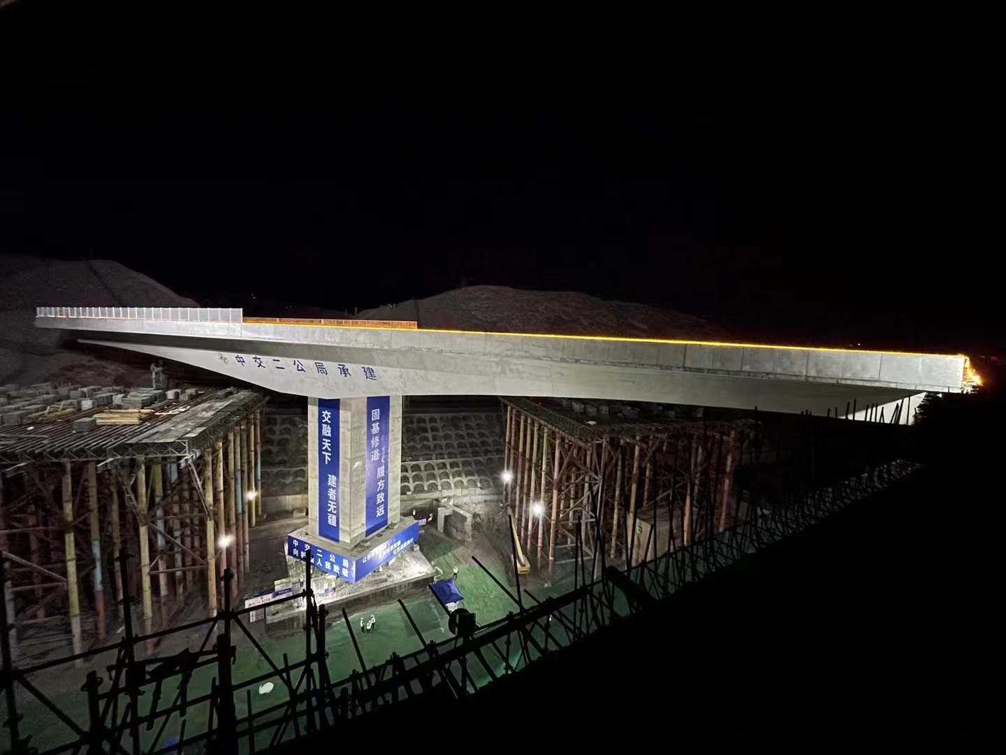 烏魯木齊市東二環(huán)項(xiàng)目燕北高架橋,上跨蘭新鐵路,橋面寬度32.5米,跨度70米,雙向八車道城市快速路,是新疆噸位最大、跨徑最大的轉(zhuǎn)體橋,轉(zhuǎn)體段總重16500噸。主橋梁采用鋼立柱+貝雷梁+承插型盤扣式鋼管腳手架等組合架體現(xiàn)澆施工,架體高度36米,耗用鋼材4000多噸,現(xiàn)澆完成后形成兩個(gè)長(zhǎng)55米的T形構(gòu)架,然后轉(zhuǎn)體77°合攏,跨度為70米,是項(xiàng)目全線重難點(diǎn)控制性工程,同時(shí)也是目前新疆地區(qū)最大的市政工程轉(zhuǎn)體橋梁。