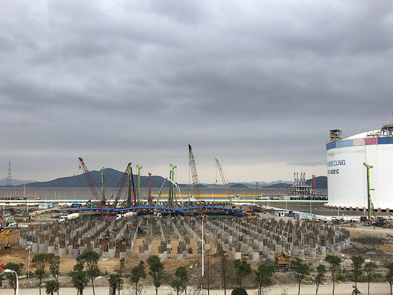 浙江LNG接收站二期工程項目是國家天然氣產(chǎn)供儲銷體系重點建設(shè)工程,項目在一期工程基礎(chǔ)上新增三座16萬方LNG儲罐及配套工藝設(shè)施。我公司承擔(dān)了3座16萬方儲罐的工程樁施工任務(wù),工程樁于2018年7月5日開工,2018年11月29日完工,工程質(zhì)量一次驗收全部合格,其中E罐工程樁Ⅰ類樁率99.5%,D、F罐工程樁Ⅰ類樁率98.05%。