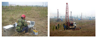 本工程勘察以鉆探為主,輔以扁鏟側脹試驗、靜力觸探試驗、標準貫入試驗、孔內波速測試、地微振測試原位測試手段。根據(jù)場地及建筑物特點進行了中壓固結試驗、三軸壓縮試驗(UU法)、土的易溶鹽含量試驗、滲透試驗、顆粒分析試驗等,手段齊全。在邯鄲巖土工程勘察中首次采用扁鏟側脹測試手段,測定了土的靜止側壓力系數(shù)、側向基床反力系數(shù)、持力層的承載力特征值。