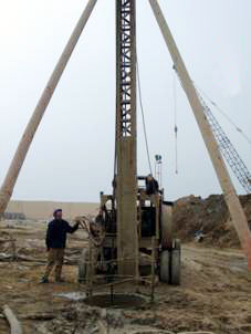 針對(duì)上述要求,工程現(xiàn)場(chǎng)采取以下針對(duì)措施:①由于花崗巖強(qiáng)度較高,沖擊鉆成孔速度慢,可能對(duì)成樁質(zhì)量產(chǎn)生影響。因此結(jié)合以往工程經(jīng)驗(yàn),根據(jù)本工程地層特點(diǎn),制定了比較切合實(shí)際的施工操作參數(shù),提高了成孔施工速度,確保單樁成樁總體時(shí)間符合設(shè)計(jì)要求。②現(xiàn)場(chǎng)加工了兩套清孔裝置,有效地提高清孔速度和質(zhì)量,保證了沉渣厚度滿足設(shè)計(jì)要求的不大于5cm。③在沖擊鉆頭焊上取樣器,解決了地層鑒定需要樣品的問(wèn)題。
