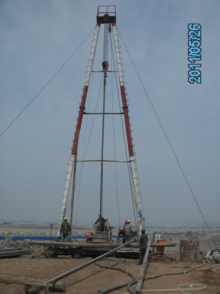河北省地震局為加強地震觀測工作,在冀東地區(qū)布置井下地震觀測點三個,要求井深300m,井徑146mm,成井后井內(nèi)不得有水,不得有磁反映,確保儀器能夠安放至井底。