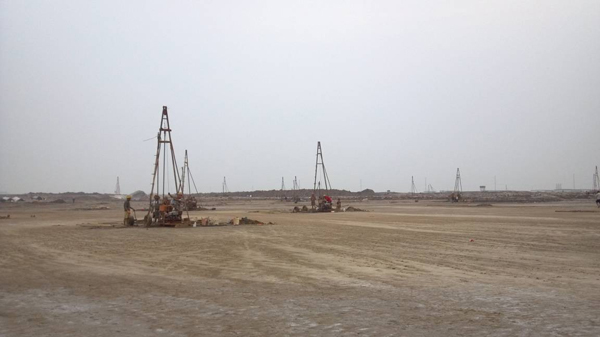 一期勘探孔451個(gè),總進(jìn)尺17351m;二期勘探孔475個(gè),總進(jìn)尺18310m??碧竭^(guò)程中采用了鉆探、靜力觸探、標(biāo)準(zhǔn)貫入試驗(yàn)、波速測(cè)試、電阻率測(cè)試等多種方法。根據(jù)現(xiàn)場(chǎng)揭露的土層和建設(shè)單位提供的建筑物結(jié)構(gòu)型式、基礎(chǔ)形式、基礎(chǔ)埋深、地基基礎(chǔ)方案等,對(duì)可能的天然地基、復(fù)合地基和樁基礎(chǔ)分別進(jìn)行了分析及建議。