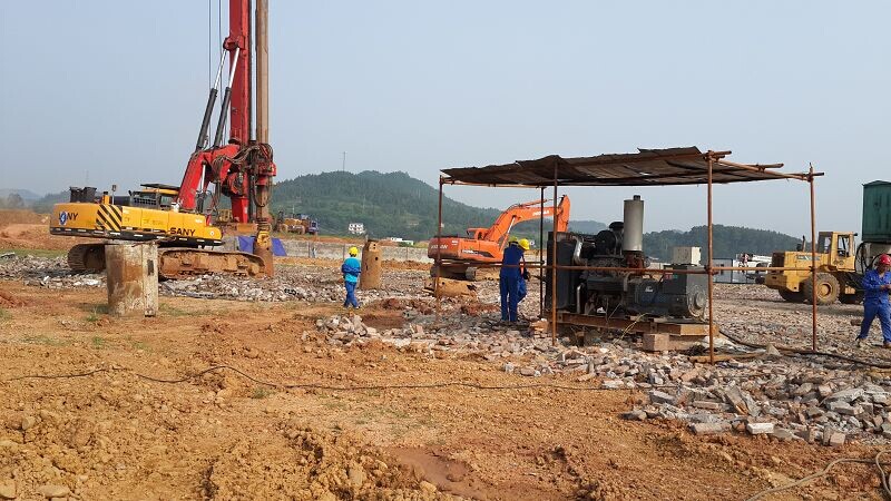 施工內(nèi)容及工程量:灌注樁鋼筋籠制作、運(yùn)輸及安放,鉆孔樁成孔、商品砼采買、砼灌注。旋挖鉆孔灌注樁樁基工程共完成1244根,樁徑800mm,樁身混凝土強(qiáng)度等級(jí)為C30,完成總米數(shù)23458.18米,設(shè)計(jì)混凝土方量11791.37方,實(shí)際灌注混凝土15624m³,后壓漿共使用900噸復(fù)合硅酸鹽水泥,加工鋼筋791.56t。