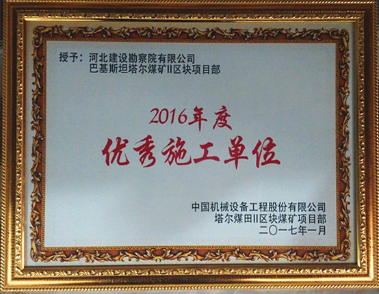 1月19日,巴基斯坦塔爾煤礦總承包方CMEC舉行2016年度優(yōu)秀集體及先進(jìn)個(gè)人表彰大會,我公司疏干井項(xiàng)目部榮獲CMEC煤礦優(yōu)秀施工項(xiàng)目部稱號,鄭聚印等三人及一名巴籍員工獲得優(yōu)秀先進(jìn)個(gè)人稱號。CMEC塔爾煤礦項(xiàng)目總經(jīng)理高度贊揚(yáng)了我公司不畏艱辛,排除萬難,按期完成疏干井施工工作,給下一步煤礦投產(chǎn)奠定了基礎(chǔ)。同時(shí),希望我公司繼續(xù)發(fā)揚(yáng)苦干快干的精神,如期完成疏干井排水管道的施工任務(wù)。