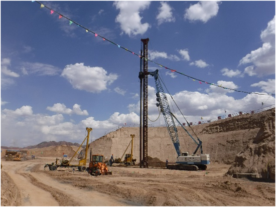 青海成品油儲(chǔ)備庫(kù)項(xiàng)目樁基工程位于青海省海東市,施工范圍主要是對(duì)施工區(qū)域采用素土/水泥土擠密樁進(jìn)行地基處理,以此消除黃土狀粉土、粉質(zhì)黏土的濕陷性,提高地基承載力。