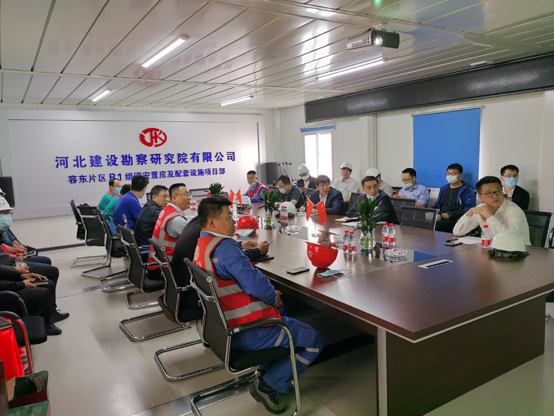 在B1組團(tuán)項(xiàng)目部,劉中林總經(jīng)理一行聽(tīng)取了項(xiàng)目部的工作匯報(bào),項(xiàng)目經(jīng)理夏文超介紹了目前施工進(jìn)展情況、下一步工作計(jì)劃、以及保證工期目標(biāo)的措施。劉中林總經(jīng)理對(duì)我項(xiàng)目部的工作給予了充分肯定,相信河北建勘一定能干好這個(gè)項(xiàng)目,并贊揚(yáng)夏經(jīng)理工作思路清晰、安排合理。劉中林總經(jīng)理要求,安置房項(xiàng)目是關(guān)系民生大計(jì)的工程,一定要確保按期完成,讓搬遷的老百姓按時(shí)入住。他還強(qiáng)調(diào)指出,馬上進(jìn)入北方的汛期,項(xiàng)目部一定要做好防汛工作,確保安全度汛。城市發(fā)展投資公司總經(jīng)理秦文龍指出:施工中出現(xiàn)的各種問(wèn)題一定要及時(shí)進(jìn)行反饋報(bào)告,城發(fā)公司將全力解決協(xié)調(diào),全力確保項(xiàng)目的順利實(shí)施。