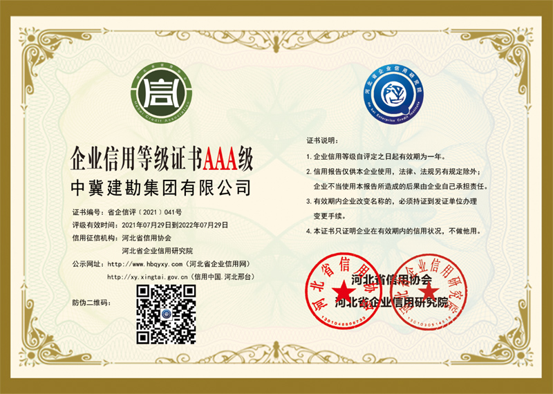 根據(jù)河北省信用辦、河北省信用協(xié)會(huì)等七部門印發(fā)的《關(guān)于開(kāi)展“推進(jìn)誠(chéng)信建設(shè)共建信用河北”的活動(dòng)方案》的通知,河北省信用協(xié)會(huì)、河北省企業(yè)信用研究院對(duì)“守合同重信用”企業(yè)進(jìn)行認(rèn)定,我公司繼續(xù)被評(píng)定為“河北省AAA級(jí)守合同重信用企業(yè)”。