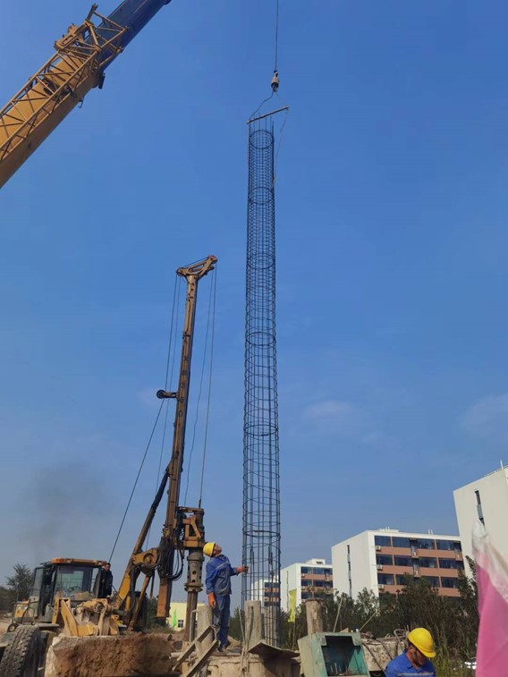 本項目位于河北邯鄲永年縣,受河北永洋特鋼集團(tuán)有限公司委托,我公司承擔(dān)本項目樁基施工?;A(chǔ)采用混凝土灌注樁,工程內(nèi)容為全套管旋挖機(jī)械成孔、清運余土(渣土)、鋼筋籠制作及安放、混凝土澆筑、鑿樁頭、清運及場地平整。工作量為樁徑800mm混凝土灌注樁174根。