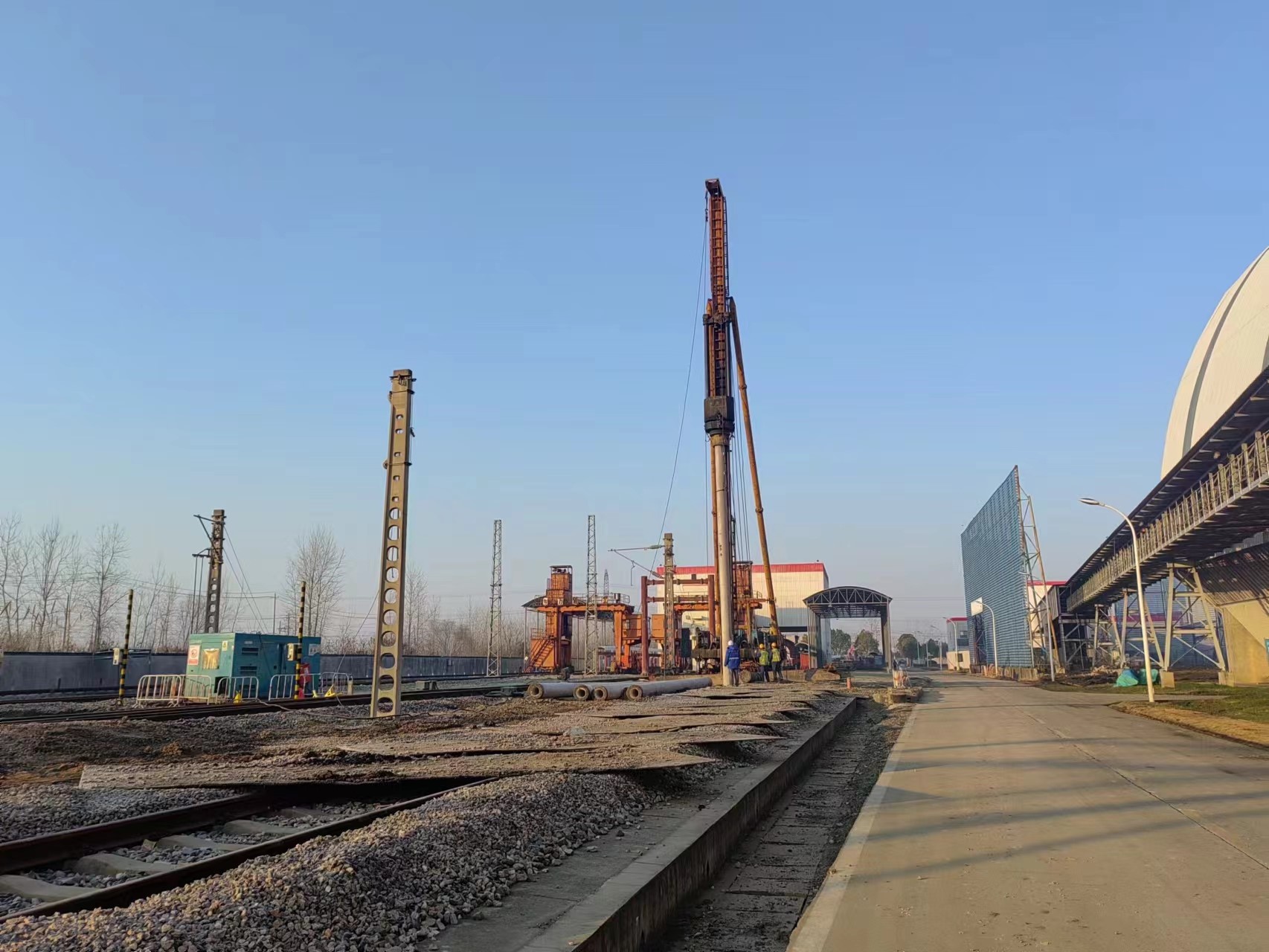 H2標段樁基工程于2023年7月11日開工, 2024年1月28日施工完成。本工程因施工區(qū)域較為分散,項目管理難度加大。為此,項目部積極與設計院就出圖順序進行溝通,提前籌劃安排行進方向的管樁原材料配備和現(xiàn)場道路鋪設、排水設施供應等后勤保障工作,保證樁機施工的連續(xù)性,確保了建設單位的工期時間要求。此外,管帶機施工區(qū)域位于三期電廠內,涉及10kV高壓線拆除、大棚拆遷、樹木移除、監(jiān)控拆除、屏風拆除等工作。項目部積極與建設方協(xié)調溝通,全力推進施工區(qū)域內障礙物拆除和清理工作。因部分樁位在火車鐵軌上,項目部積極與鐵路方溝通,與建設方、監(jiān)理方謀劃施工方案,采取相應措施,圓滿完成了施工任務。經第三方檢測,合格率100%。