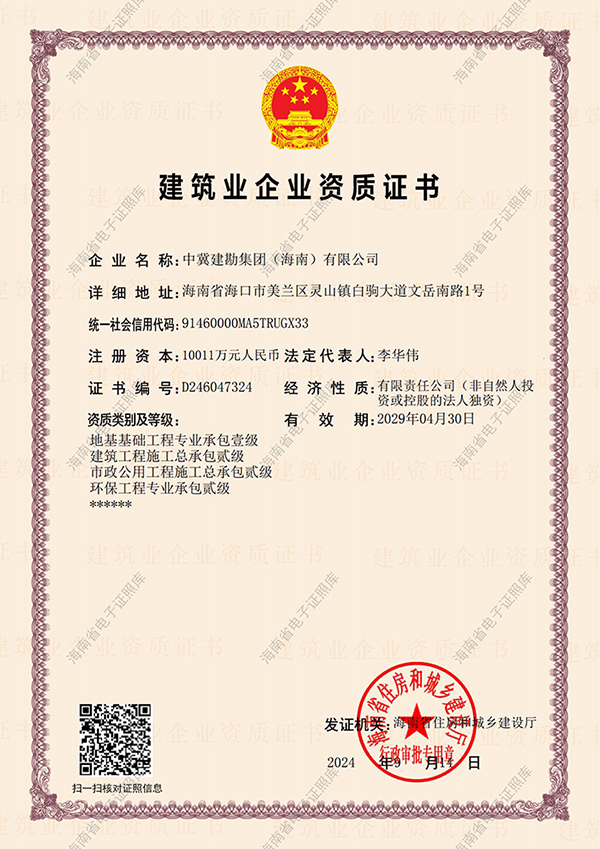 按照公司發(fā)展規(guī)劃,經(jīng)過近半年的努力,海南公司于2024年9月14日通過海南省住建廳審查,成功將地基與基礎(chǔ)工程專業(yè)承包貳級晉升為壹級。此項(xiàng)壹級資質(zhì)的取得,是海南公司資質(zhì)實(shí)力質(zhì)的飛躍,為海南公司持續(xù)發(fā)展,為公司實(shí)施“雙總部建設(shè)”,構(gòu)建“一業(yè)為主,適度多元化發(fā)展”戰(zhàn)略打下了堅(jiān)實(shí)的基礎(chǔ)。