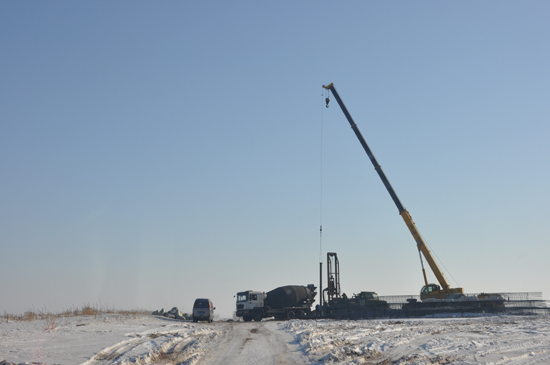 華能大慶綠源風(fēng)電五棵樹(shù)風(fēng)電場(chǎng)以及華能大慶綠源風(fēng)電新立風(fēng)電場(chǎng)樁基工程均位于黑龍江省大慶市大同區(qū)五棵樹(shù)以北。本工程為風(fēng)機(jī)承臺(tái)下鉆孔灌注樁施工,地層主要以粉土為主。施工時(shí)采用回轉(zhuǎn)鉆機(jī)反循環(huán)成孔,本項(xiàng)目共完成直徑800mm鉆孔灌注樁814根,灌注混凝土14133.43 m3,鋼筋加工1573.71t,后壓漿1440m3。
